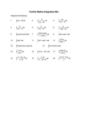 Every two primitive functions differ by a constant c. These problems are all reasonable to expect to see on the quiz this coming friday (and each friday thereafter). By practicing maximum problems included in these worksheets. If at time t = 2s the rocket is at a position x = 30m away from the launch position, we can calculate its position at time ts as follows. Never runs out of questions. A constant rule, a power rule, Review of di erentiation and basic integration skills the following worksheet is designed to help review and/or sharpen your ability to di erentiate and integrate functions encountered in a typical calculus 1 course. Integration can be used to find areas, volumes, central points and many useful things. Math 34b integration worksheet solutions 4 solution. These revision exercises will help you practise the procedures involved in integrating functions and solving problems involving applications of integration. Examples, solutions, videos, activities, and worksheets that are suitable for a level maths to help students learn how to integrate. The area can be found by adding slices that approach zero in width:. Integration worksheets integration worksheets include basic integration of simple functions, integration using power rule, substitution method, definite integrals and more.